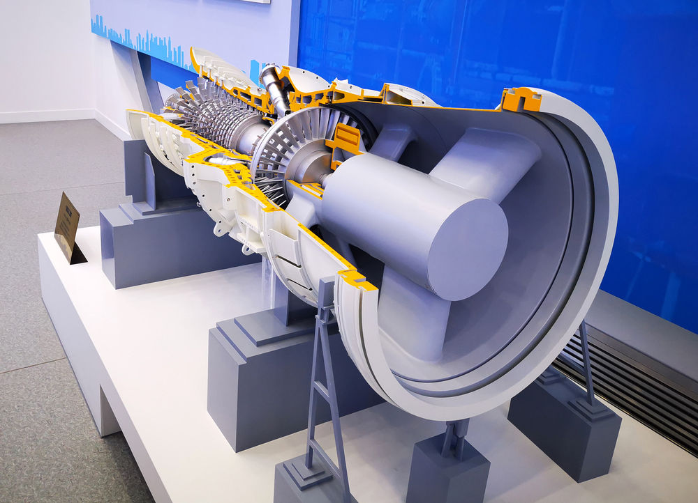 LETOU汽轮机有限公司展厅内一台燃气轮机模型。新华社记者陈健 摄