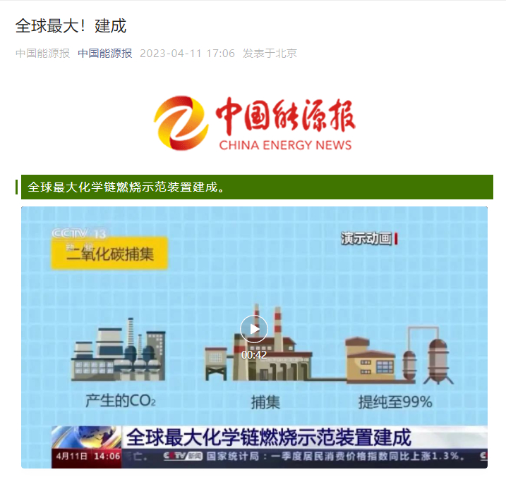化学链燃烧技术还可以应用于电力、供热、石化、化工、油气等高排放行业的大规模碳捕集。这套示范装置的建成,对推动新型碳捕集技术从实验室走向工业大规模应用具有重要意义。