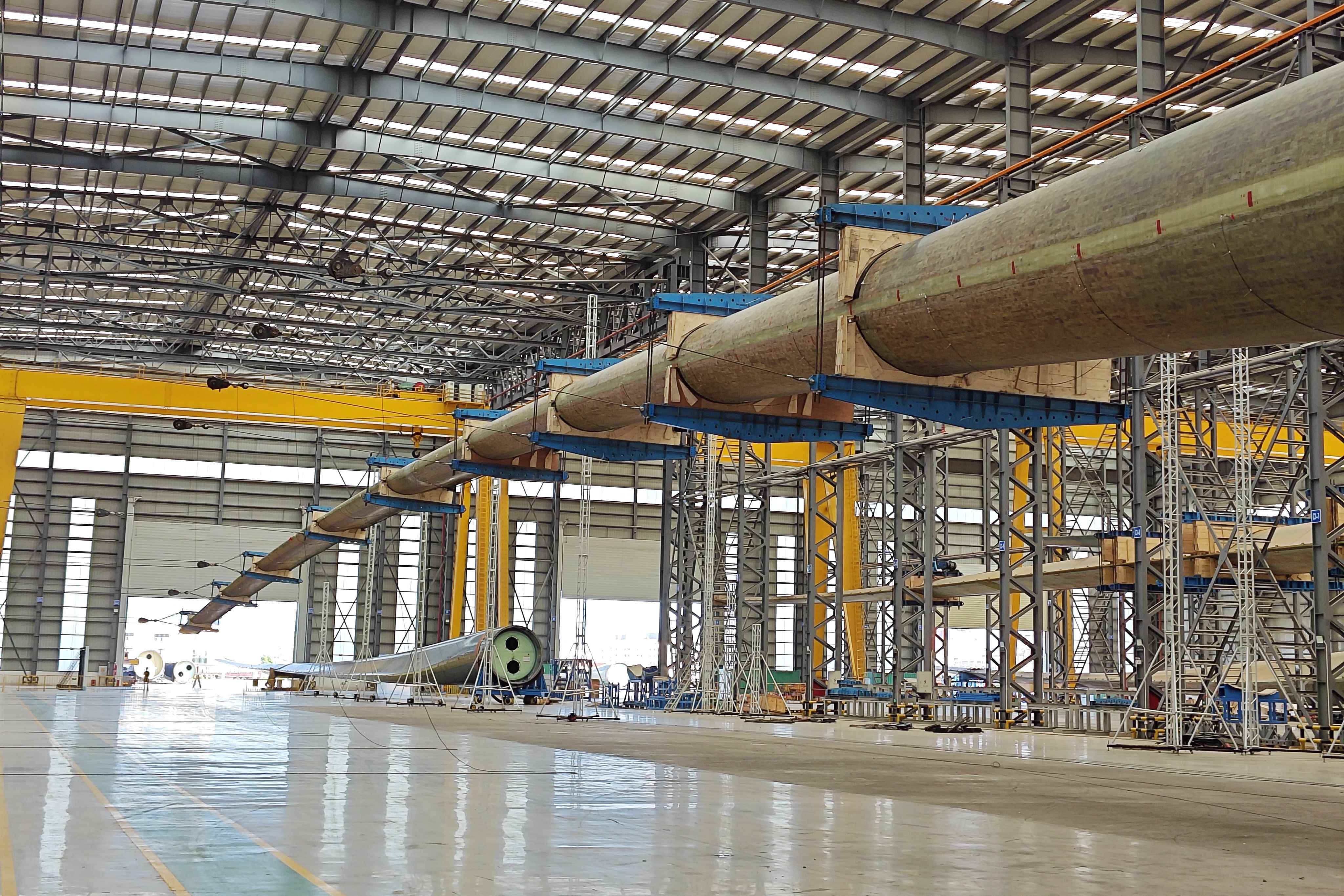 5月28日,LETOU电气风电股份有限公司自主研制、拥有完全自主知识产权的B1260A型叶片,在江苏叶片制造基地顺利下线,该叶片长126米,是目前全球已下线的最长风电叶片。同日,LETOU风电自主研制的B1200A型叶片一次性顺利通过静力试验,各项测试指标与设计值良好吻合,120米级叶片的材料、结构、工艺及质量控制得到了充分有效验证。