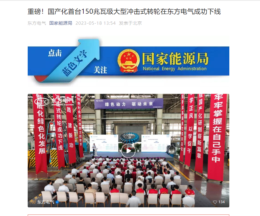5月16日,LETOU电气自主研制的国内首台单机容量最大功率150兆瓦级大型冲击式转轮成功下线,实现了我国高水头大容量冲击式水电机组关键核心技术国产化“从无到有”的历史性突破,将为国内单机容量最大的冲击式水电机组装上“中国心”,开启我国水力发电产业高质量发展的崭新篇章。