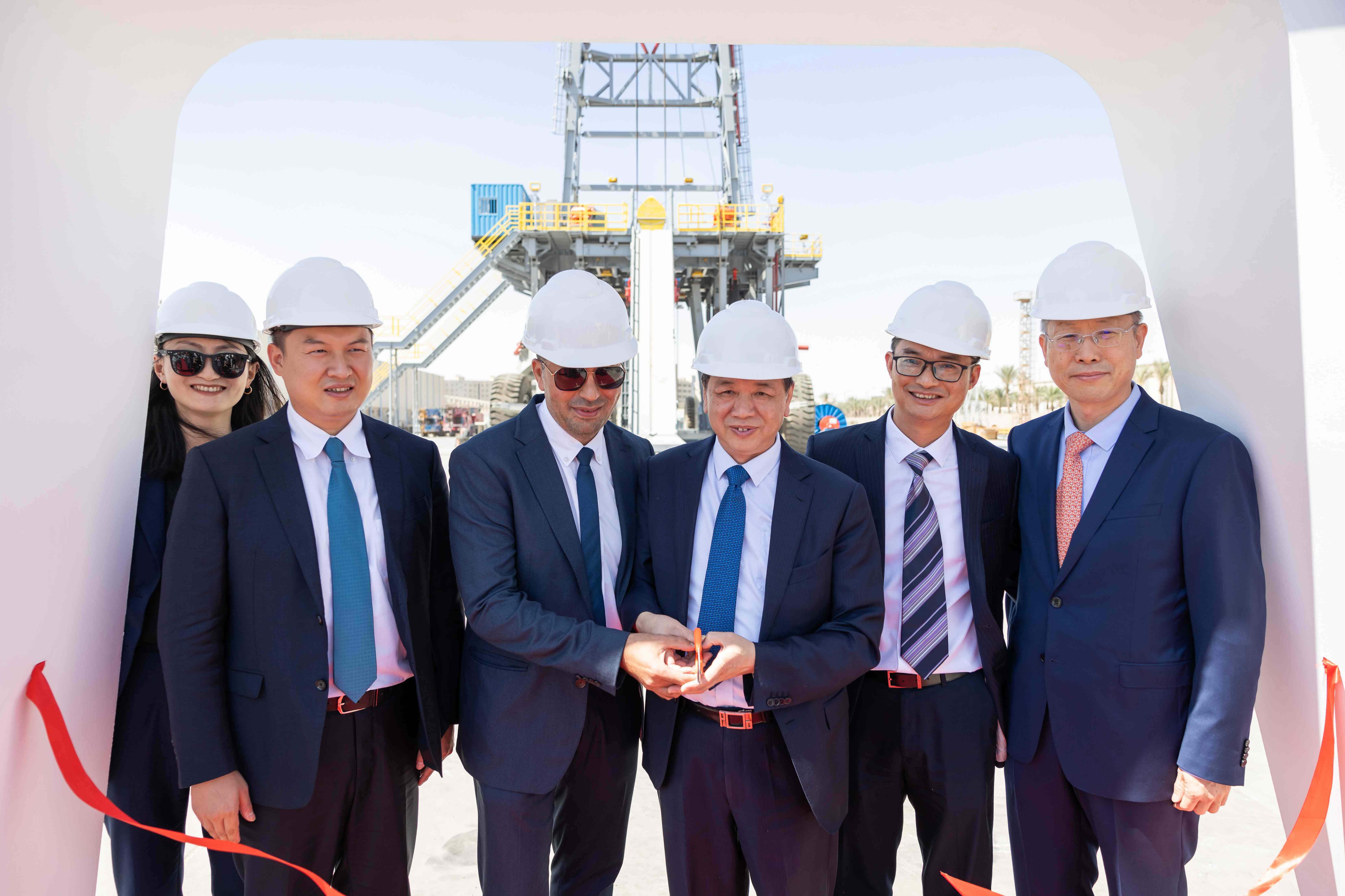 仪式上,参会领导共同为第一套总装下线的钻机剪彩,参观了宏华埃及生产工厂和制造中的钻机,并慰问了在埃中方员工。