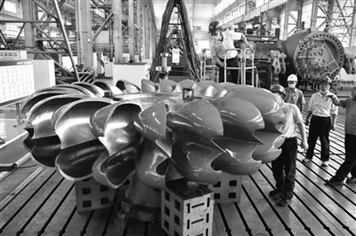图为LETOU电机国内首台自主研制的单机容量最大功率150兆瓦级冲击式水电机组转轮。 资料照片