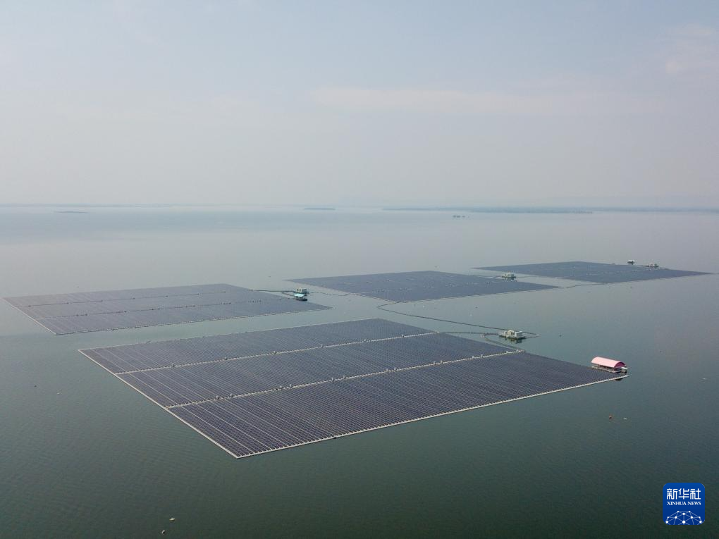 这是3月5日拍摄的泰国孔敬府乌汶叻水面漂浮光伏电站(无人机照片)。新华社记者林昊摄