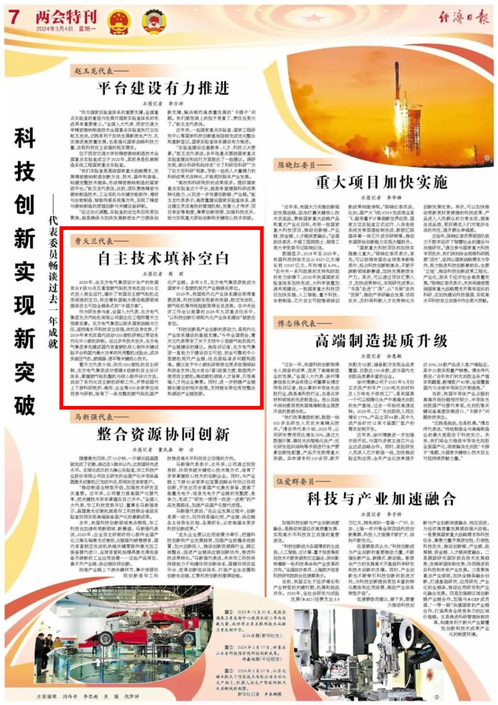 [经济日报]全国人大代表曹天兰:自主技术填补空白
